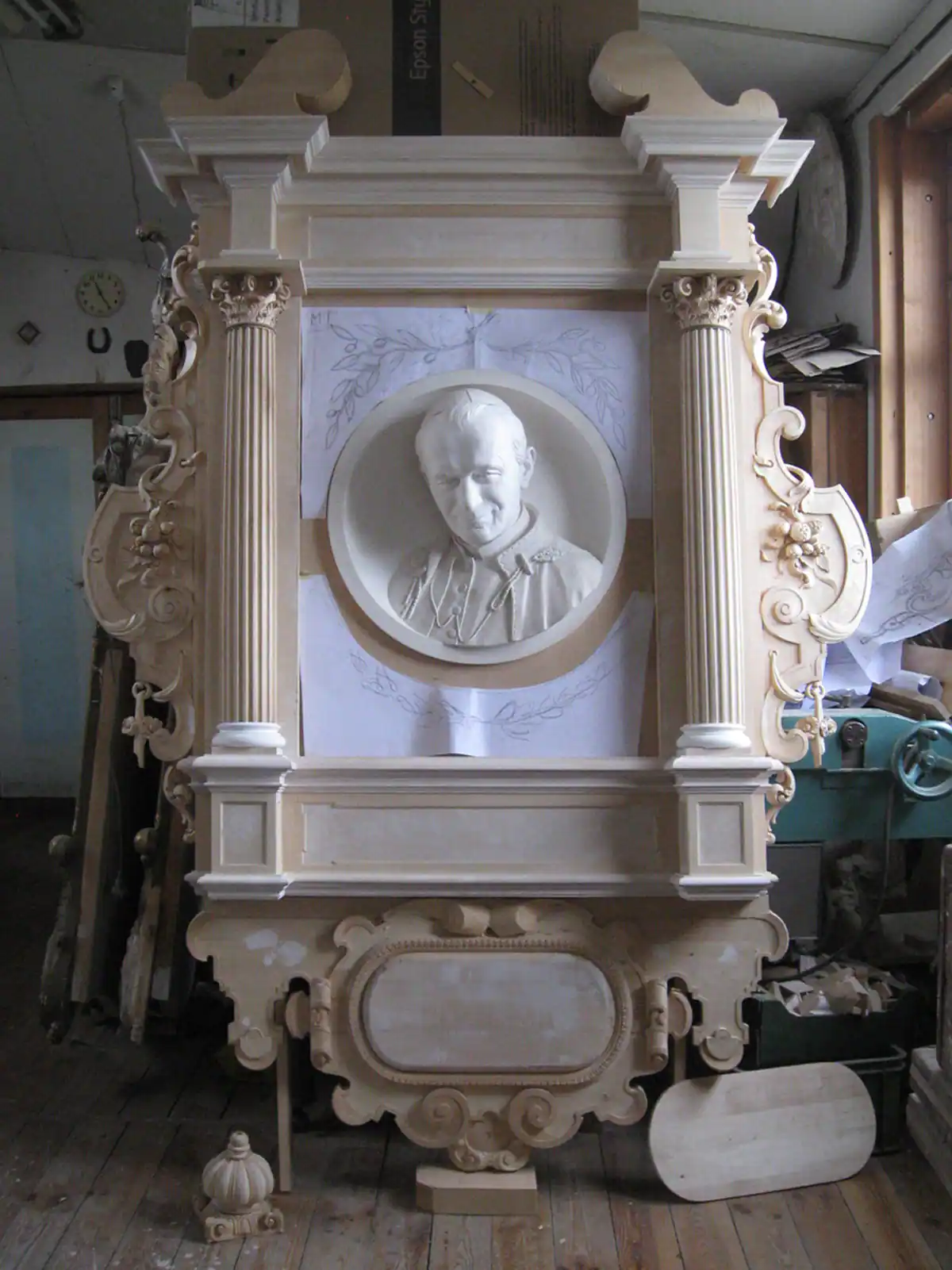 Opis: projekt i realizacja (stolarka, rzeźba, polichromia)
