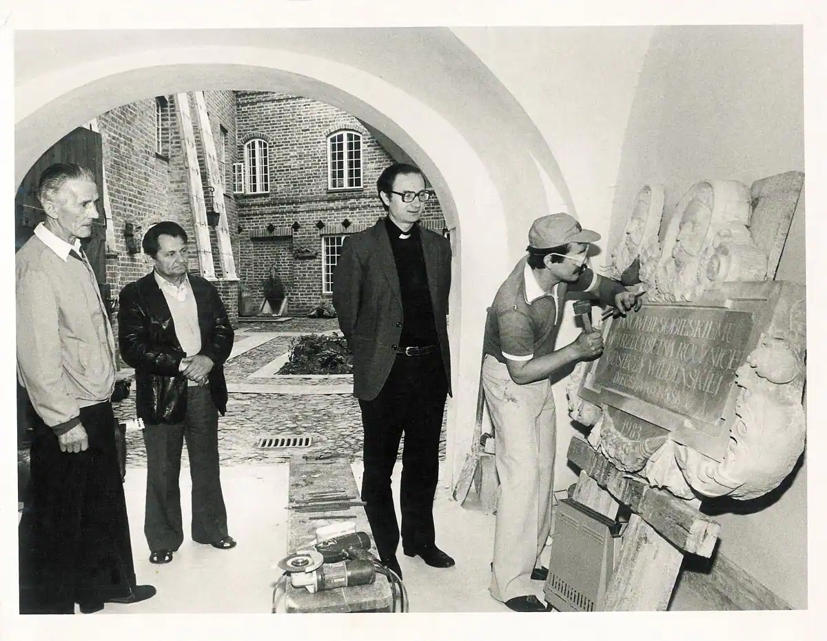 Tablica upamiętniająca 300-setną rocznicę Odsieczy Wiedeńskiej – w czasie rzeźbienia